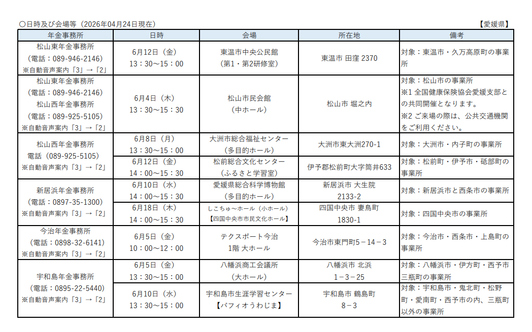 令和8年度の社会保険制度説明会の開催が公表されました。